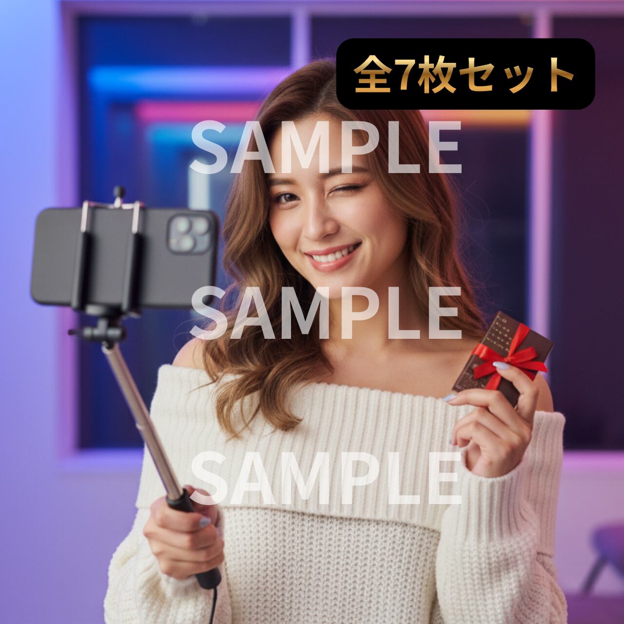 【AI美女デジタルアート】インフルエンサー理央の秘め事|ファンには内緒のバレンタイン|スマホ壁紙7枚セット
